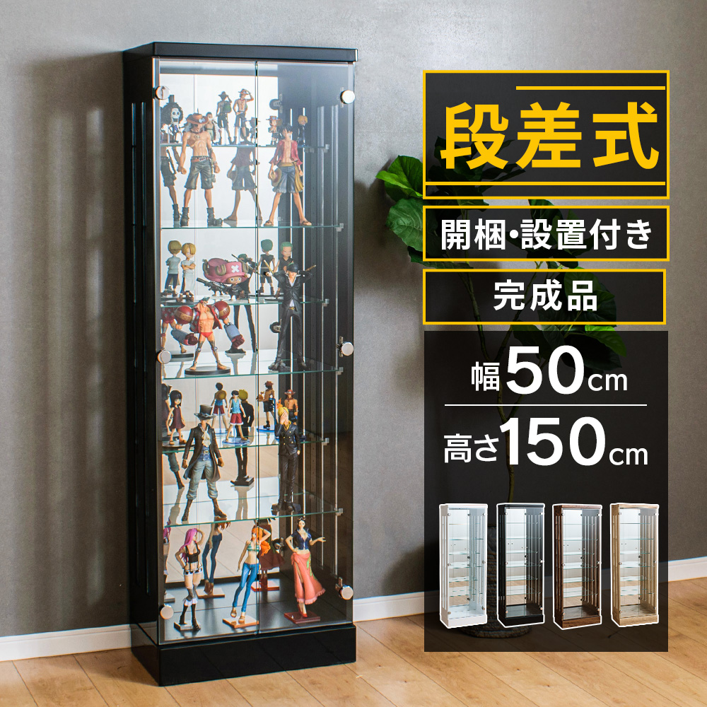 コレクションケース 段差式 幅50 ハイタイプ スリム フィギュア ケース コレクションボード ガラス 収納 棚 ショーケース コブリナ
