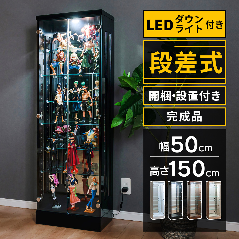 コレクションケース 段差式 LED ダウンライト付き 幅50 ハイタイプ フィギュア ケース コレクションボード 収納 棚 ガラスケース コブリナ 爆買