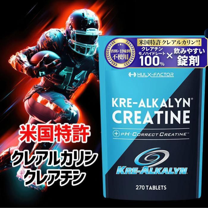 【ハイパフォーマンス成分】世界で唯一の「pHレベル12のクレアチン・モノハイドレート」クレアルカリン(R)を国内GMP認定工場で製造したクレアルカリン270錠です。