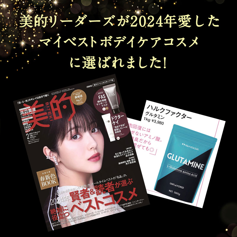 【プロも納得!純度100%の高品質】L-グルタミン 1,000,000mg (1kg)配合!(1回あたり目安5,000mg)。グルタミンパウダーは本気でトレーニングに挑むあなたの日々のコンディションを整えてくれる重要な成分です。ハルクファクターは純度「100%」というプロフェッショナル品質のピュアフリーフォームパウダーを使用いています。