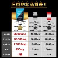 【業界屈指の配合量】 シトルリン 39000mg × アルギニン 27000mg 合計66000mgを配合し、マカや黒生姜、高麗人参をはじめ合計12種の話題成分を配合した、医師監修のエナジーサプリメントです。「男らしくありたい」「スタミナをつけたい」という男性の体をサポートいたします。