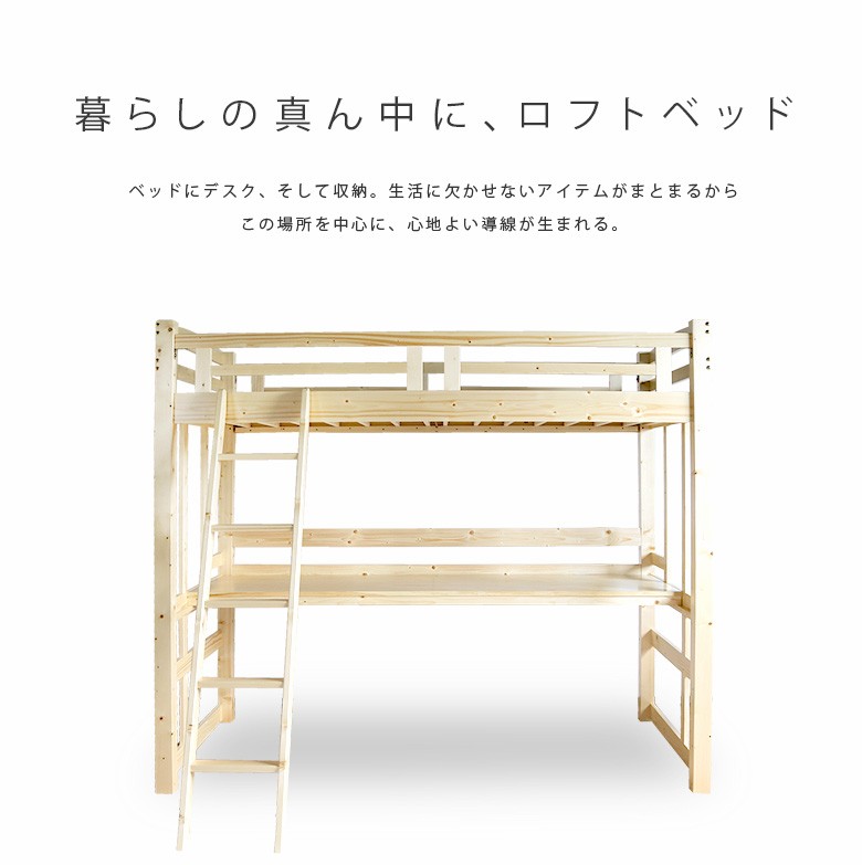 子供から大人まで幅広い年代で使えるシングルサイズのロフトベッド。
