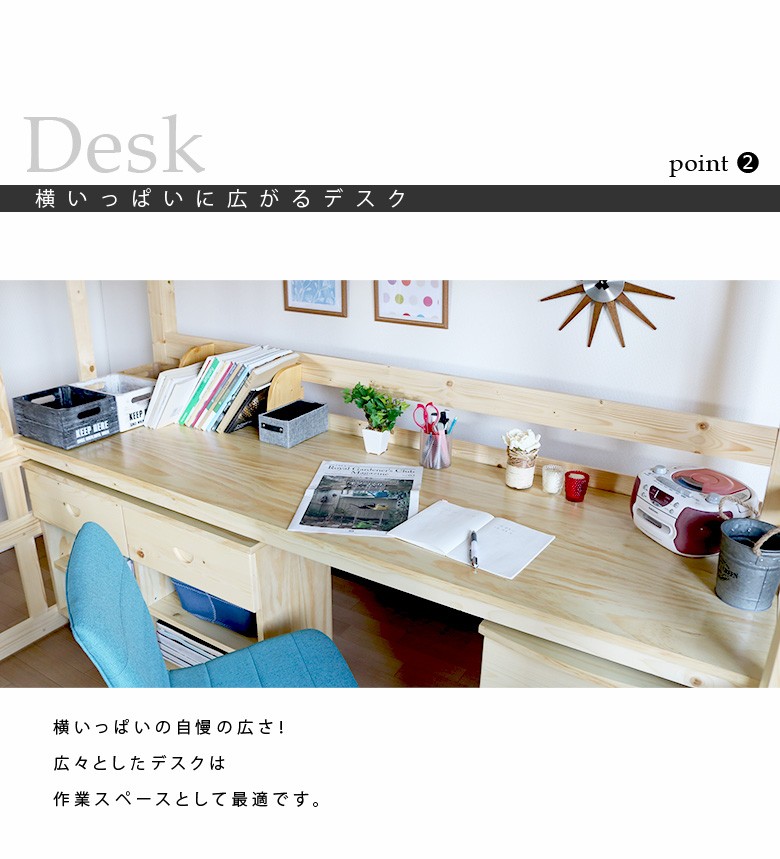 パイン無垢材を使用した温かみのあるナチュラルなデザインです。