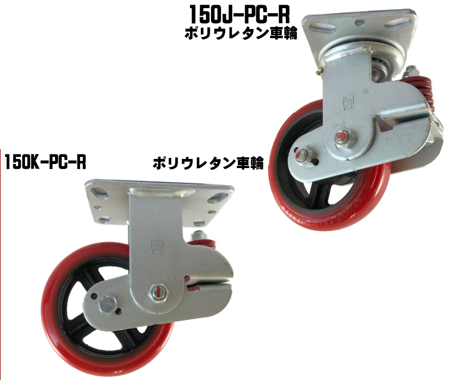 150mm スプリング 自在・固定 各1個 ポリウレタン車輪 150J/K-PC-R 手押し/けん引兼用 台車・荷車の補修用 中部産業