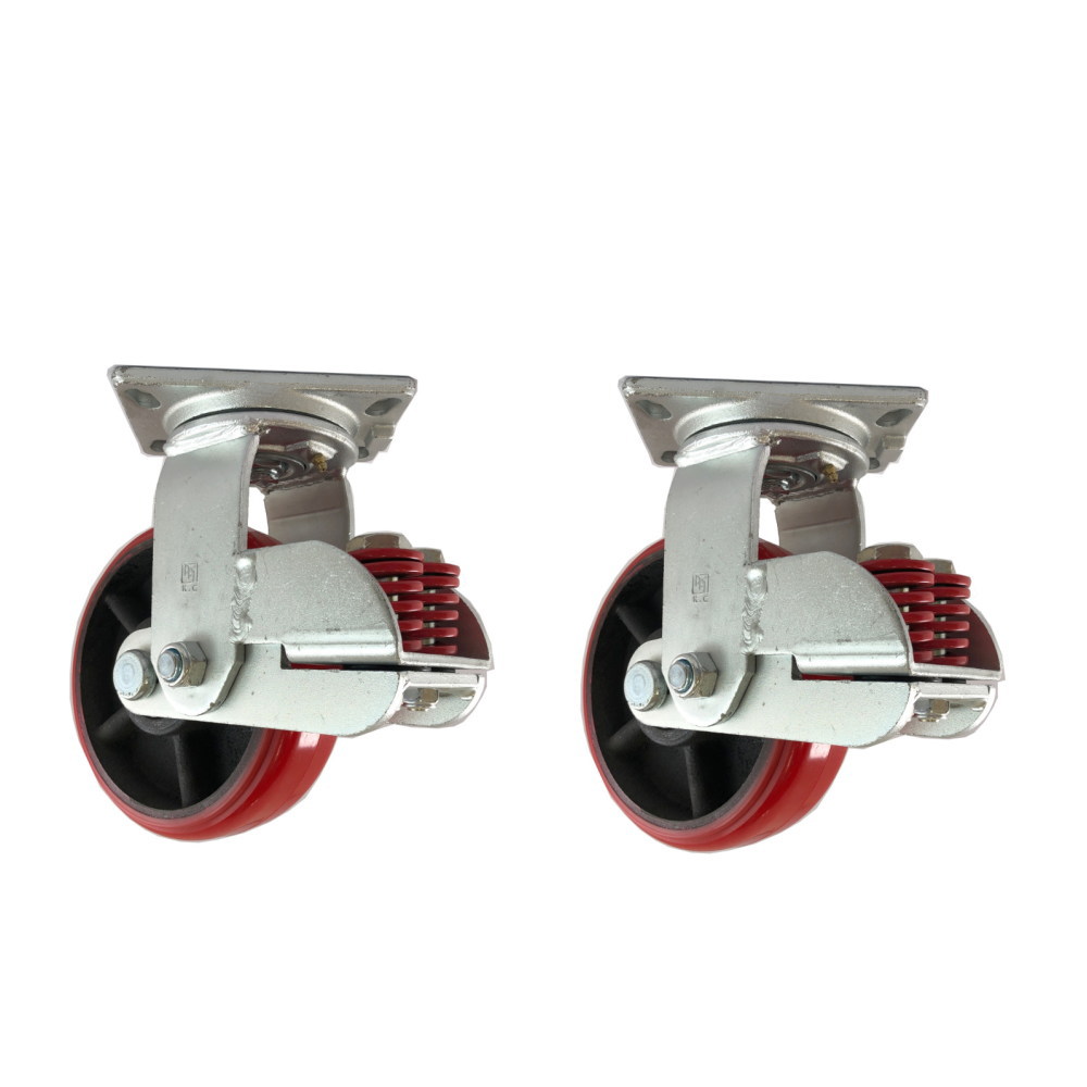 150mm 重荷重用 けん引用 スプリング 自在キャスター ポリウレタン車輪 150J-PCC-WR 2個セット 台車・荷車の補修用 中部産業