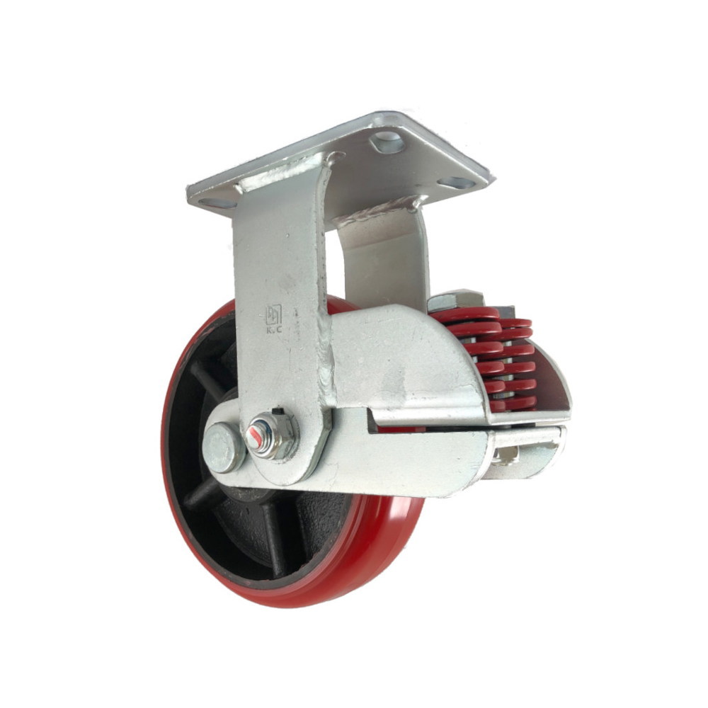 150mm 重荷重用 スプリング 固定キャスター 耐荷重800kg ポリウレタン車輪 150K-PCC-WR けん引用 台車・荷車の補修用 中部産業