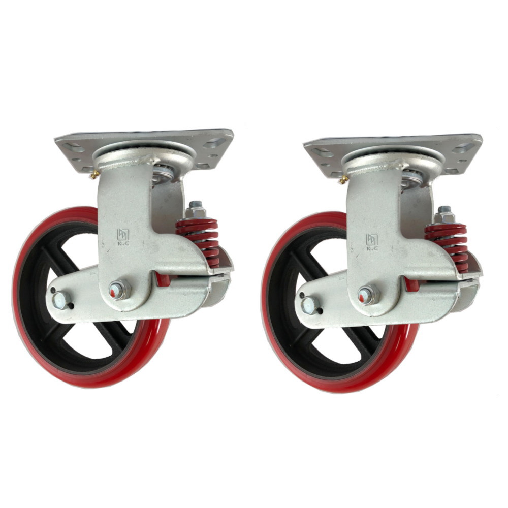 200mm スプリング 自在キャスター ポリウレタン車輪 200J-PC-R 2個セット 手押し/けん引兼用 台車・荷車の補修用 中部産業