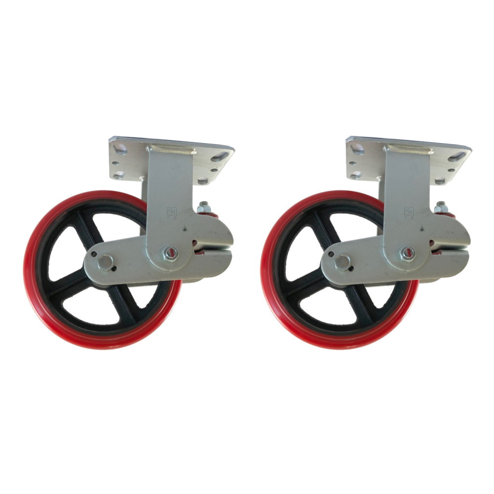 200mm スプリング 固定キャスター ポリウレタン車輪 200K-PC-R 2個セット 手押し/けん引兼用 台車・荷車の補修用 中部産業