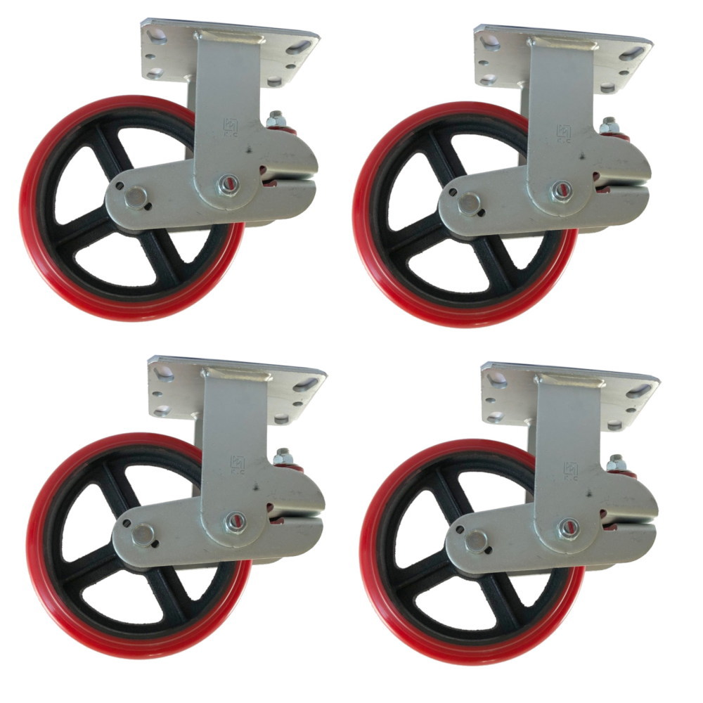 200mm スプリング 固定キャスター ポリウレタン車輪 200K-PC-R 4個セット 手押し/けん引兼用 台車・荷車の補修用 中部産業