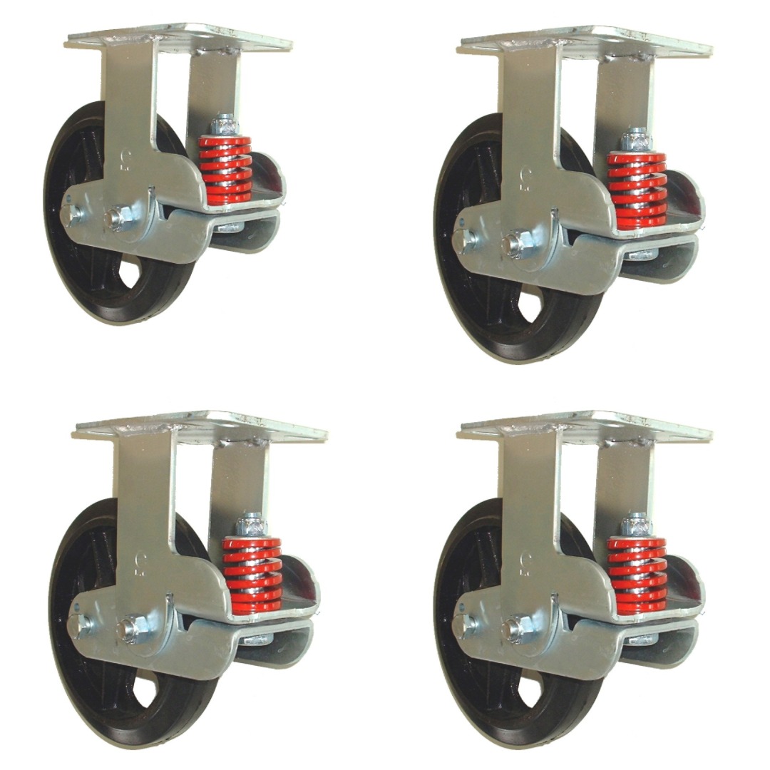 200mm スプリング 固定キャスター スーパーソリッドタイヤ車輪 200K-SST-R 台車・荷車の補修用 手押し/けん引兼用 4個セット