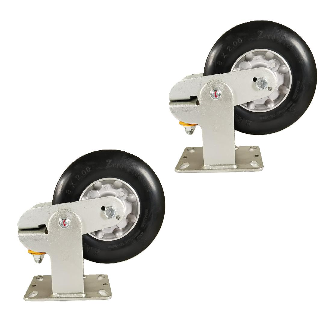 車輪径200mm スプリング 固定キャスター 中荷重 8x2.00K-ZP-Y 2個セット 緩衝 ゼロプレッシャタイヤ 中部産業