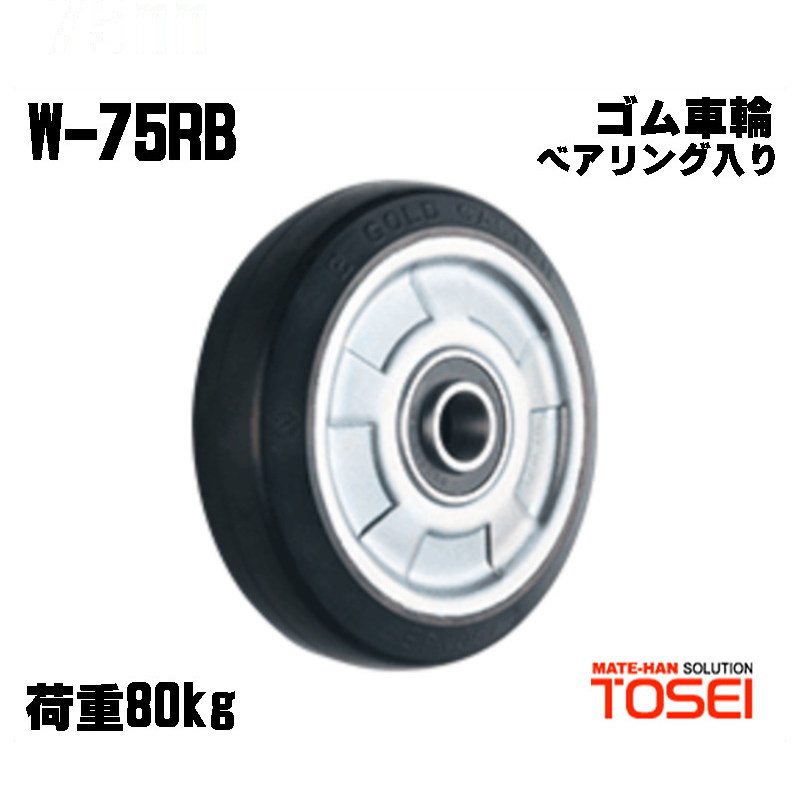 東正車輛 W-75RB 75mm ゴム車輪 ベアリング入り 荷重80kg ゴールドキャスター 交換用