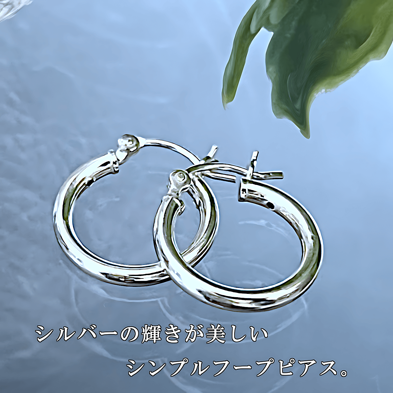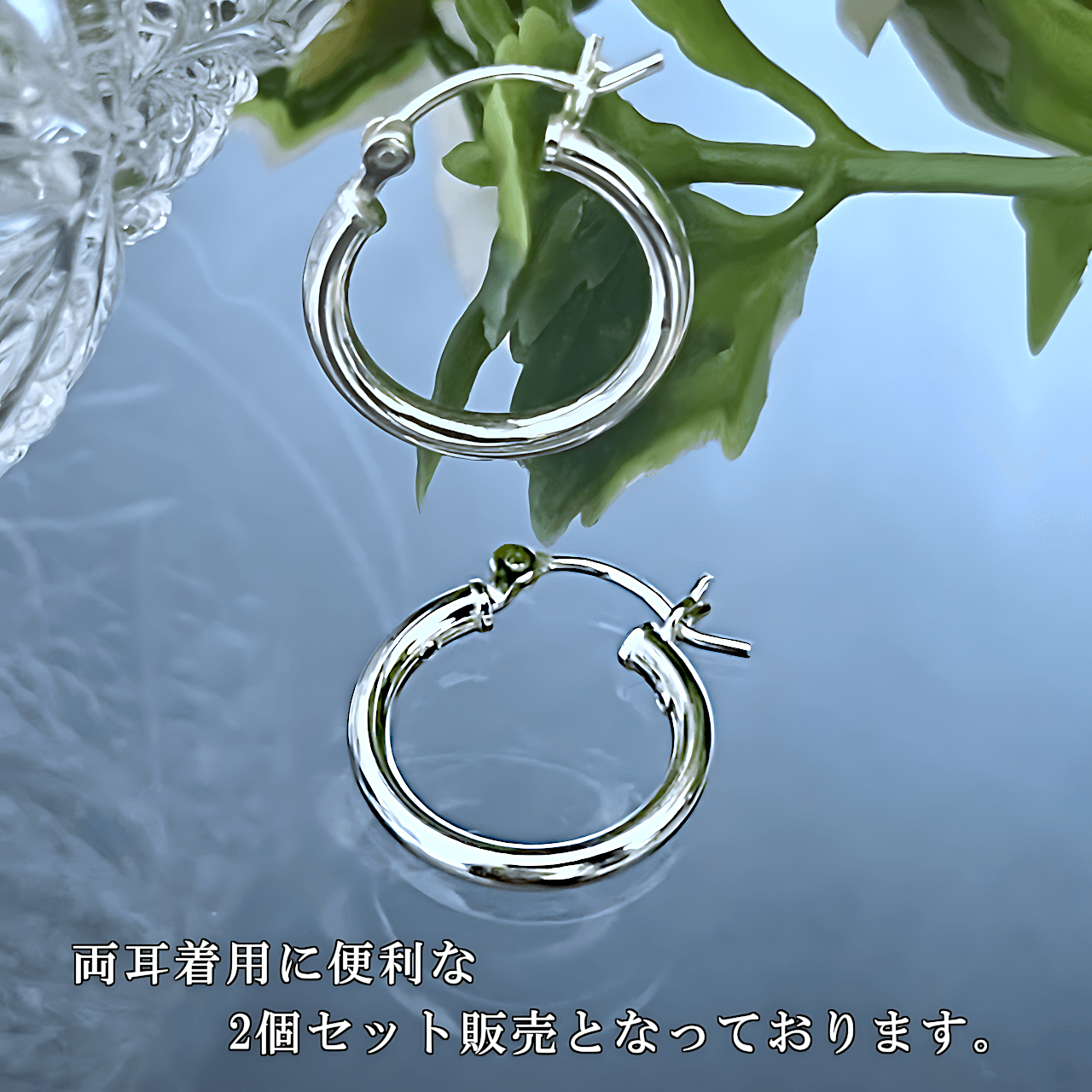 シルバーの輝きが美しいシンプルフープピアス。2個セット。