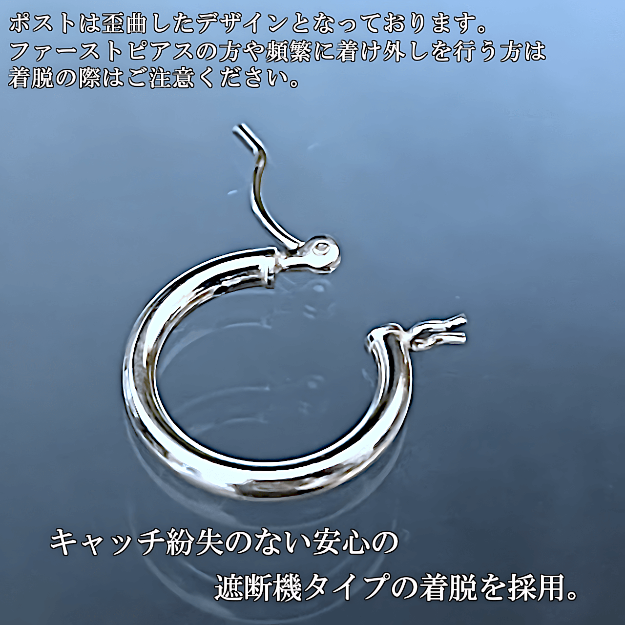 ※ポスト部分は歪曲したデザインとなっておりますので、ファーストピアスのお客様や頻繁に着け外しをする