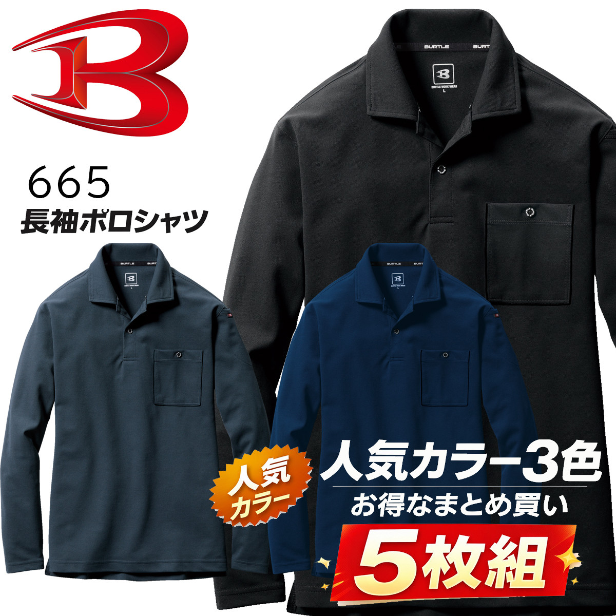 バートル BURTLE 半袖 ポロシャツ 5枚セット 667 ストレッチ 吸汗速乾 デオドラント 消臭 オールシーズン ドライ カノコ ポリエステル 送料無料