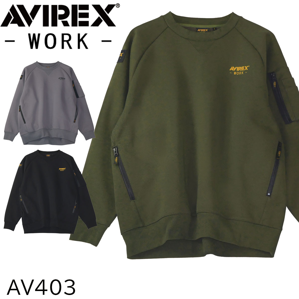 【先着順オリジナルステッカープレゼント】AVIREX WORK アビレックス ワーク スウェット シャツ トレーナー AV403 ポケット ワーク カジュアル 送料無料