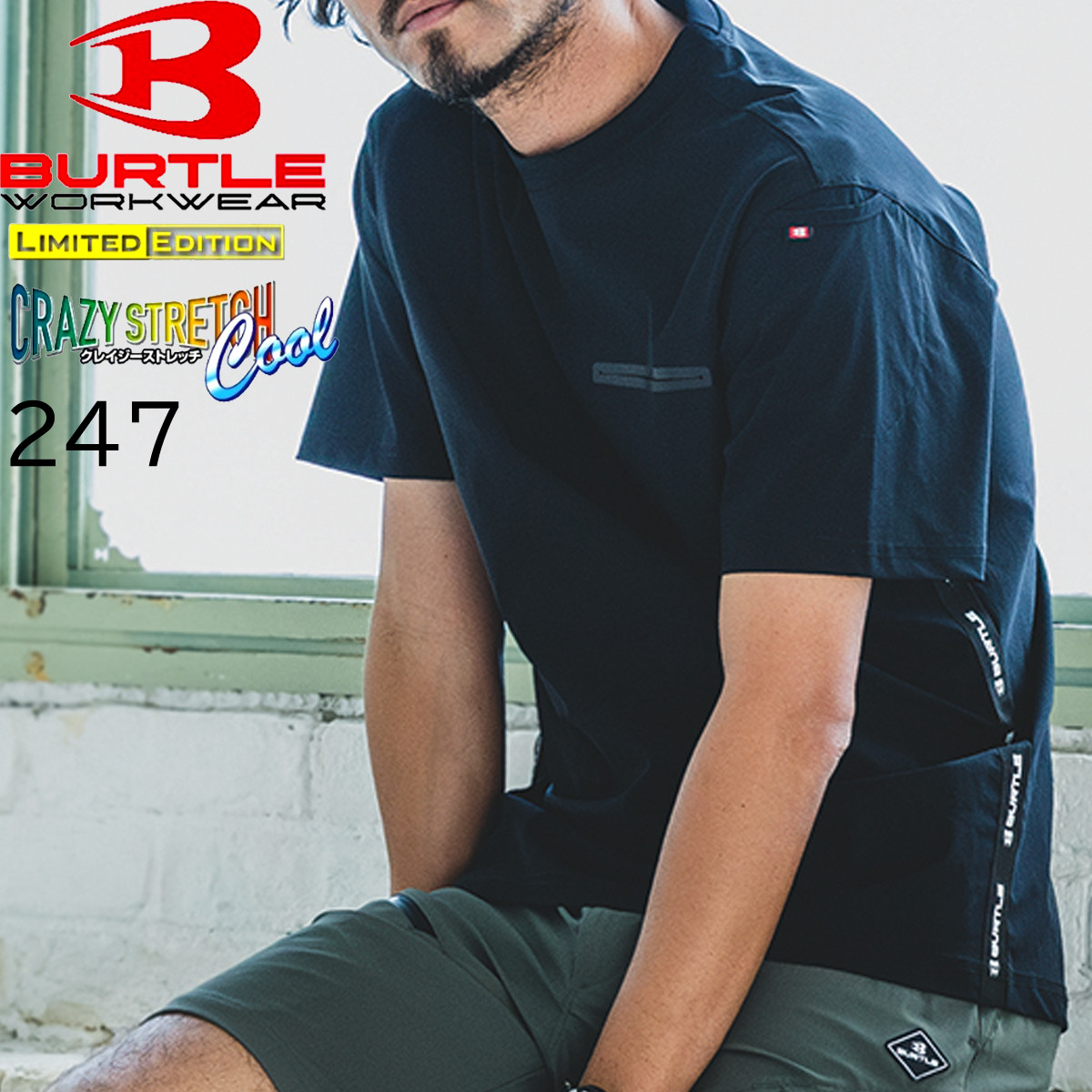 バートル BURTLE 247 半袖 ショート Tシャツ ストレッチ 吸汗速乾 消臭テープ UVカット 接触冷感 ナイロン ポリウレタン 送料無料