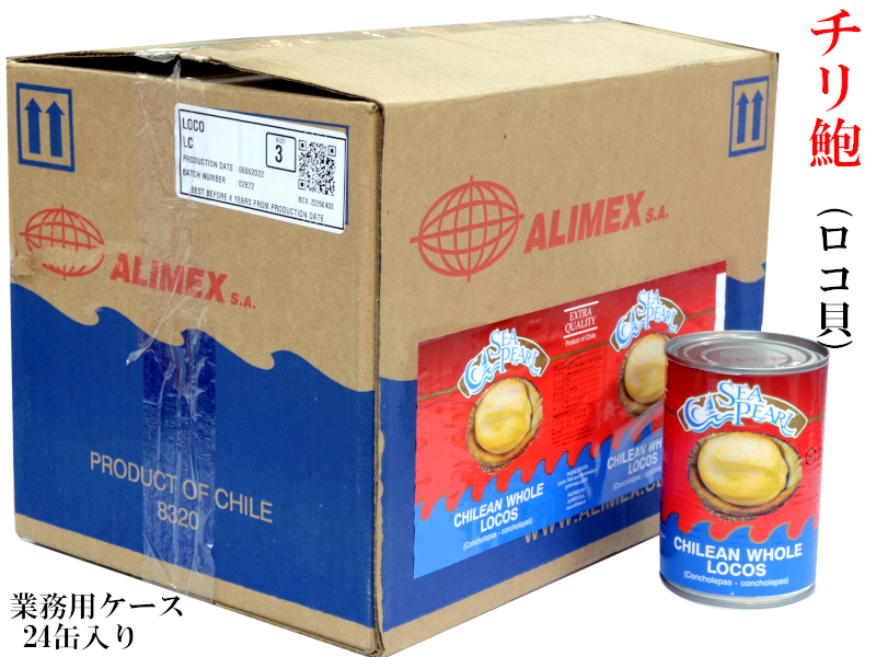 ロコ貝は南米原産のアッキガイ科の巻き貝で、その形状や食感が鮑に似ているため、別名をチリ鮑と呼ばれる人気の食材です。鮑と比べて価格が安いため、中華料理や寿司店などで鮑の代替として用いられています。業務用ケース(24缶)入りです