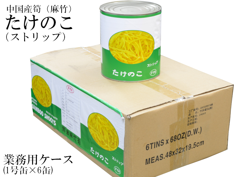 たけのこ 麻竹 筍水煮缶詰 ストリップ 業務用ケース 1号缶×6缶