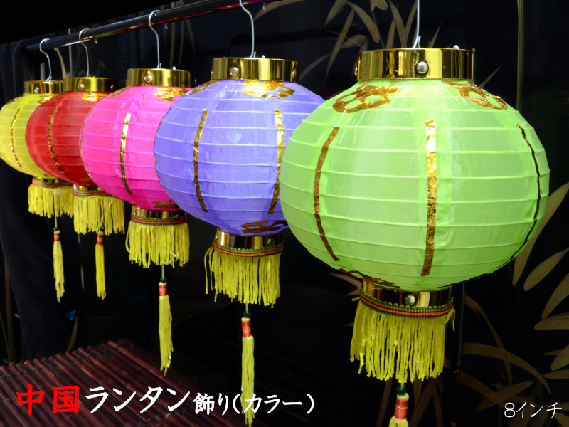 本商品は簡単な折り畳み式の中国ランタン飾りです。シンプルな無地タイプ(8インチ)なので設置場所を選びません。色はカラフルに5色そろえました。灯りは付きませんが、ご購入者ご自身で内部に灯りをセットする方が多いようです(当店では一切ご対応ができません)。中華料理店など店舗装飾や、ドラマや舞台の小道具、イベントの飾りなどに人気がございます。中華料理店など店舗装飾や、イベントなどの飾りつけに是非ご利用下さい!