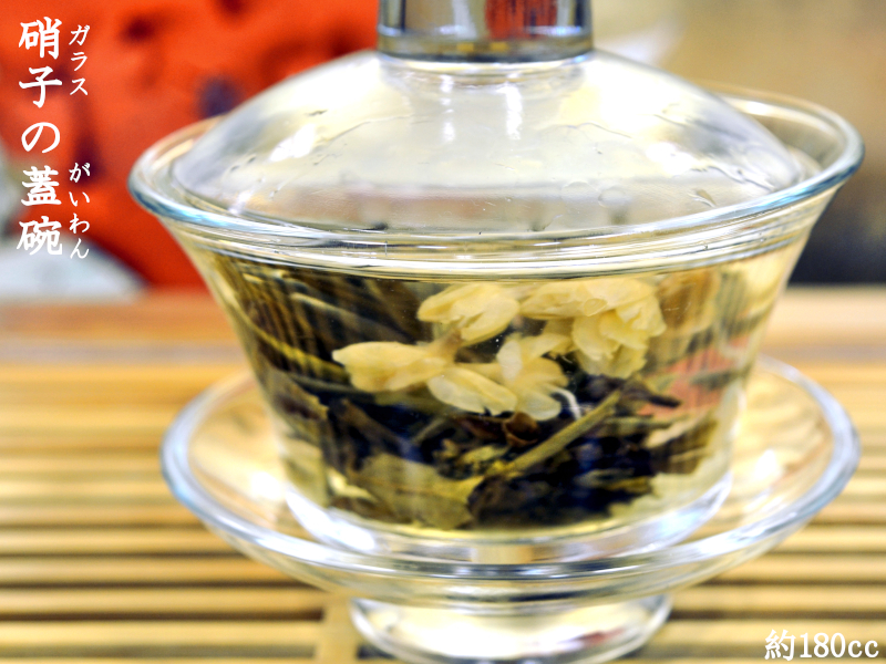 蓋碗は功夫茶で使われる茶器で、蓋つきの湯のみのことです。茶葉を直接入れてお湯を注ぎ、蓋をして蒸らした後、そのままお茶を飲む茶器です。本商品はガラス製の蓋碗です。耐熱ガラス製ですので今人気の花入り工芸茶を入れて目で楽しむこともできます。