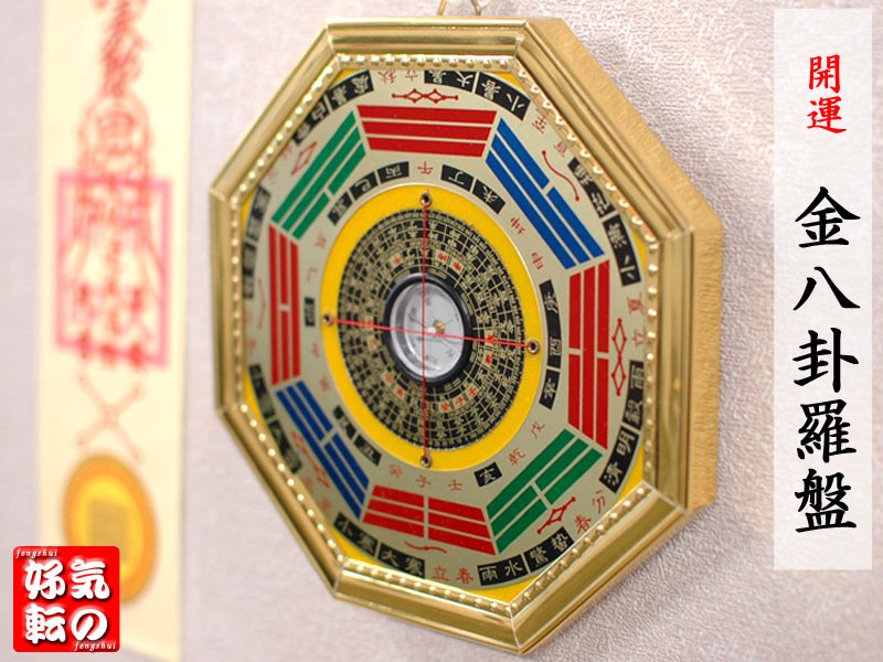 本商品は財運に結びつく金色仕様の風水盤です。壁掛けにもなりますので、飾っておくだけで運気改善が図れます。中央の羅盤はしっかりと回転し、風水盤としても使えます。裏面には道教などで使用する霊符と、風水を安定させる四神が書かれています。オフィスや中華料理店などの風水インテリアや映画やドラマなどの小道具にもお薦めの商品です。