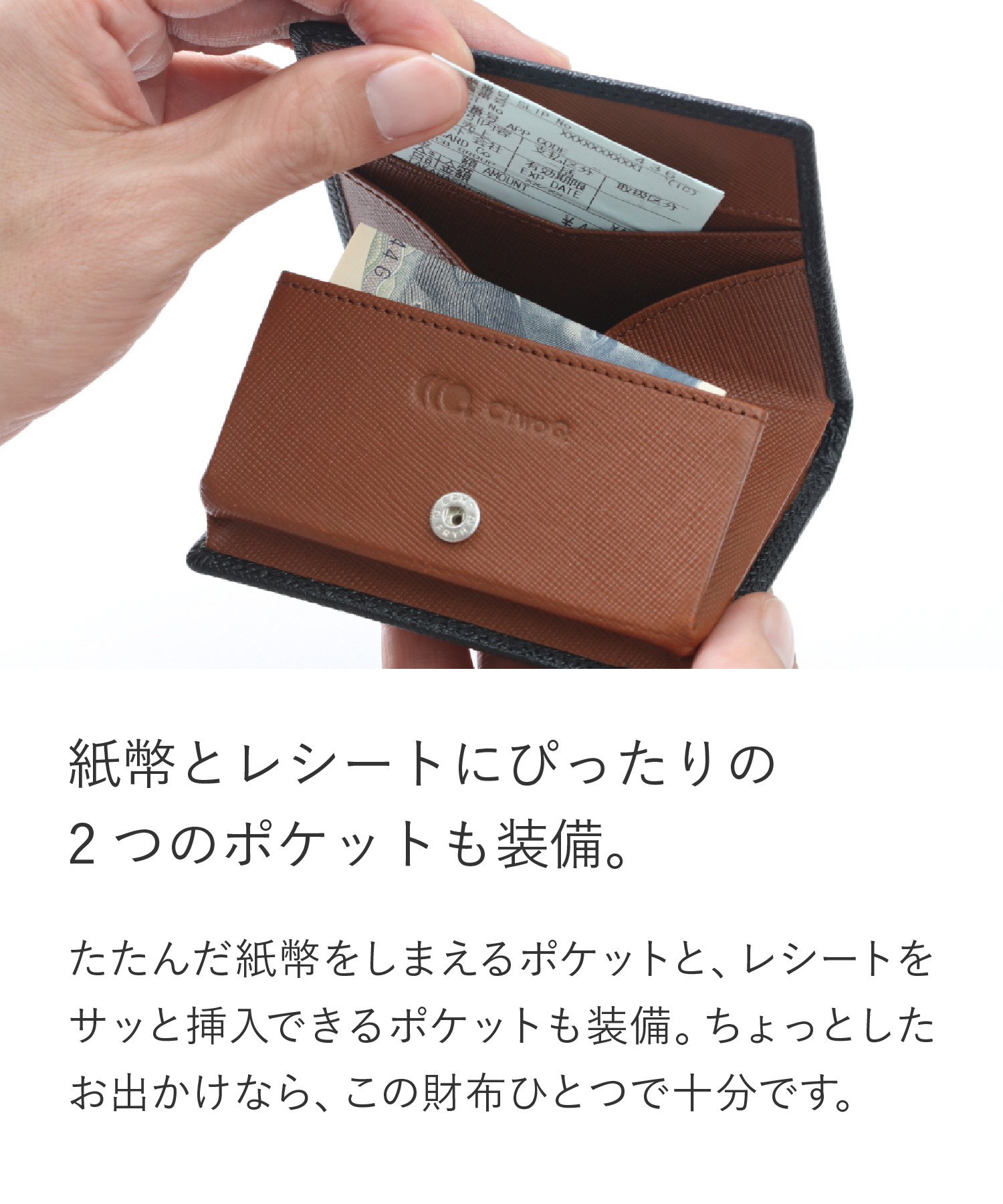 内側の小ポケット2つはレシートやお札入れに