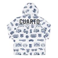 ロゴやアメリカンテイストなモチーフがちりばめられたトップスとシンプルパンツのレインウェア。