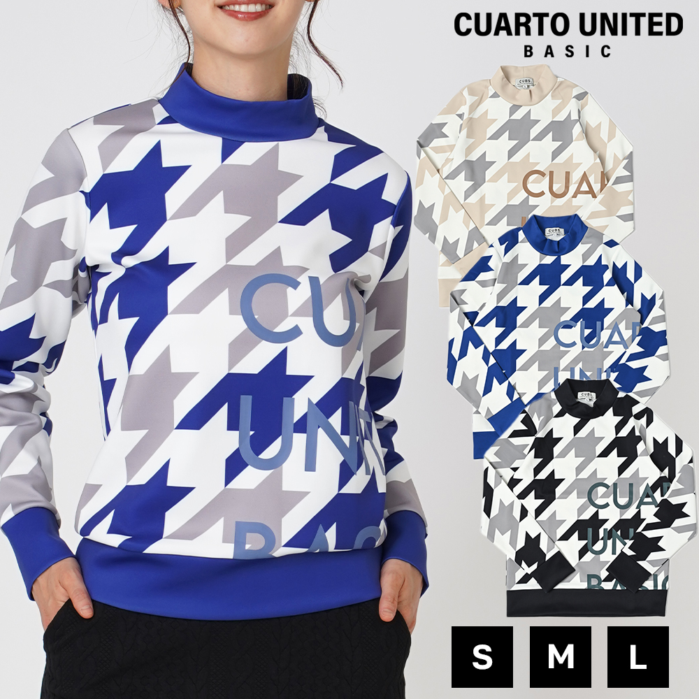 モックネック トレーナー スウェット スムースカットソー 千鳥柄 ビッグロゴ レディース クアルトユナイテッド ゴルフウェア 23BASIC