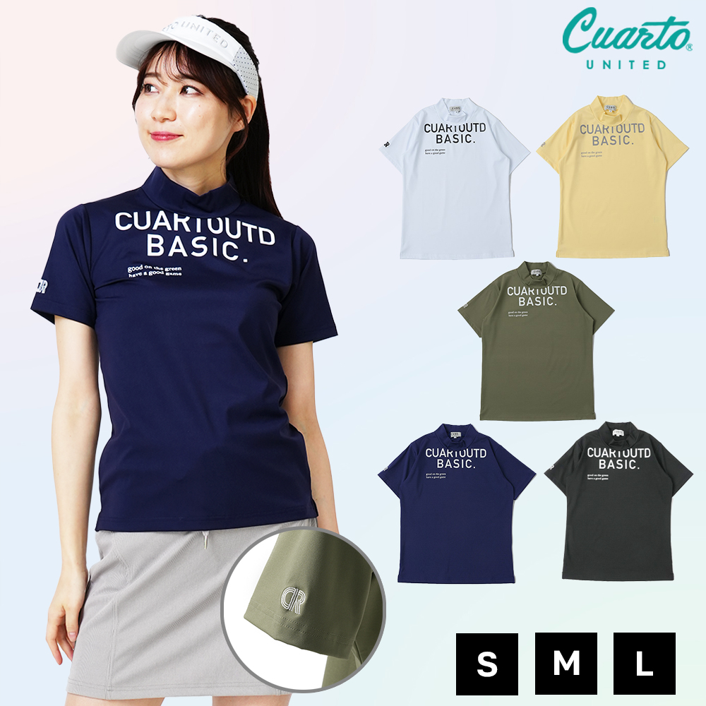 モックネックTシャツ 半袖 接触冷感 フロントロゴ レディース クアルトユナイテッド ゴルフウェア 24SS