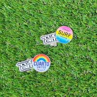 淡いグラデーションカラーはサーフ系なデザイン、レインボー柄タイプはブランドロゴが主張されたポップなデザイン。