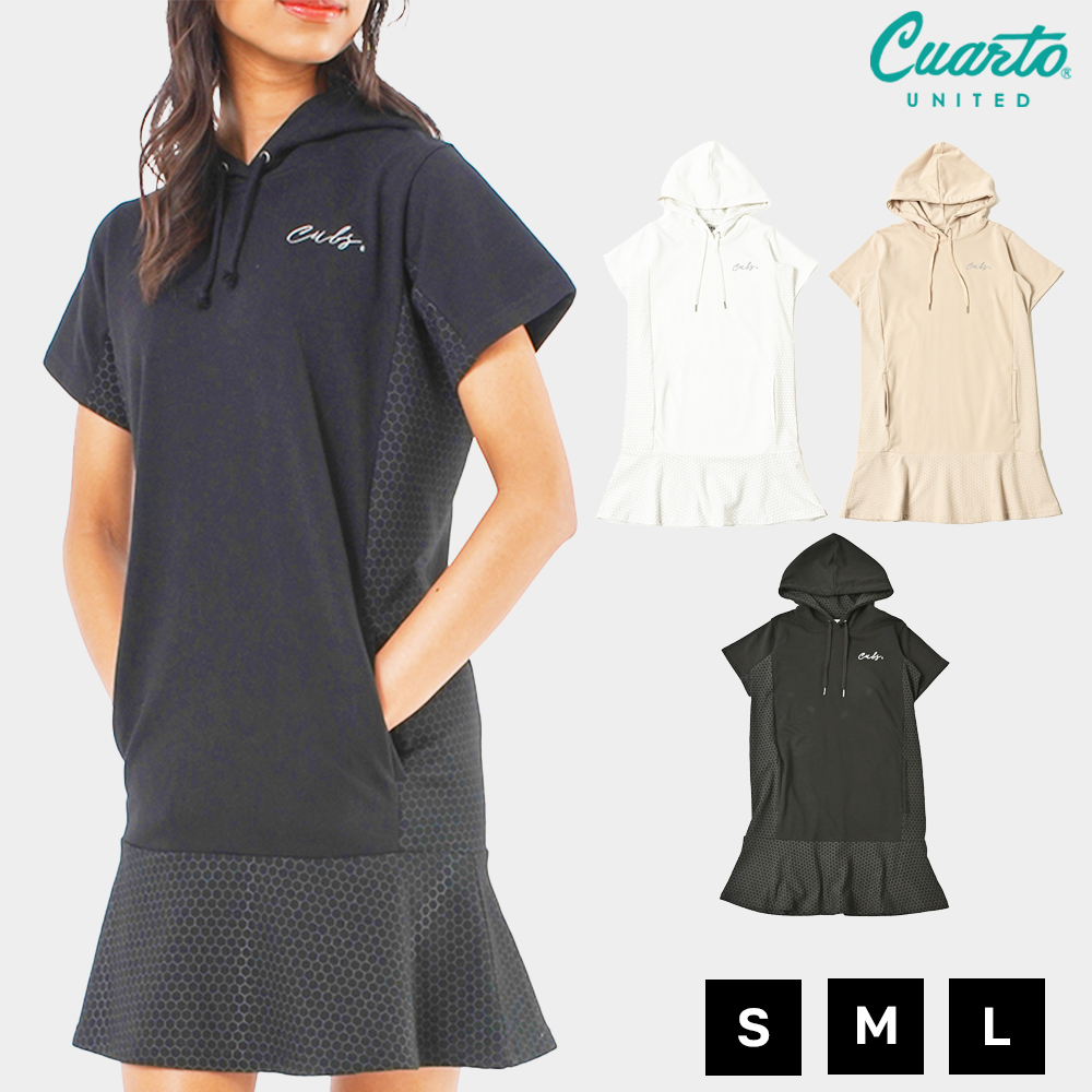 パーカーワンピース 半袖 サイド切替 ハニカム柄 バックロゴ レディース クアルトユナイテッド ゴルフウェア 23BASIC