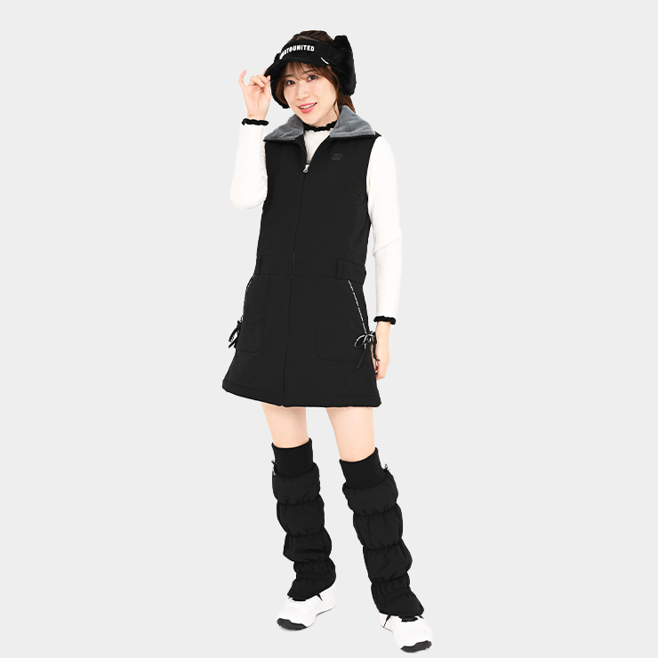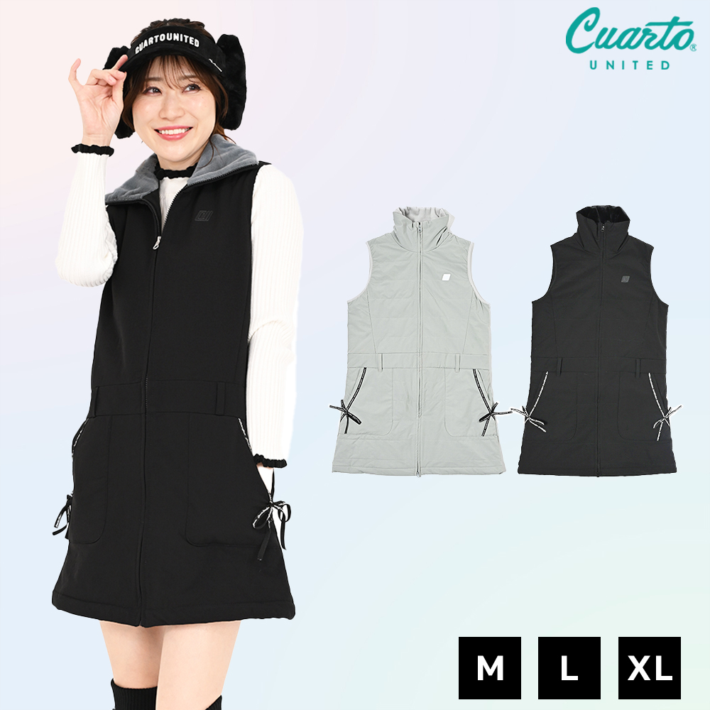 ノースリーブ中綿ワンピース ジップアップ ファー襟 リボンポケット レディース クアルトユナイテッド ゴルフウェア 25FW