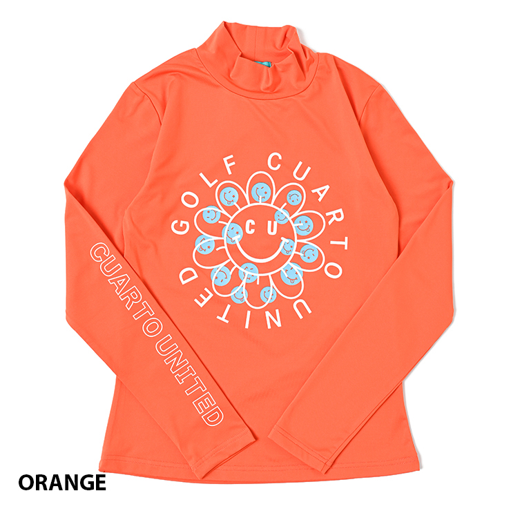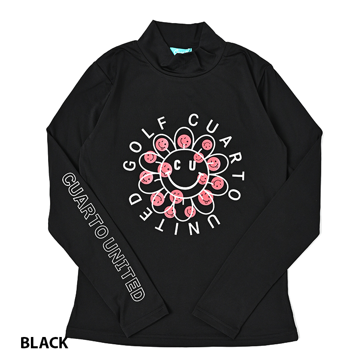 モックネックシャツ 長袖 微起毛 フラワースマイル レディース クアルトユナイテッド ゴルフウェア ロンT 23FW