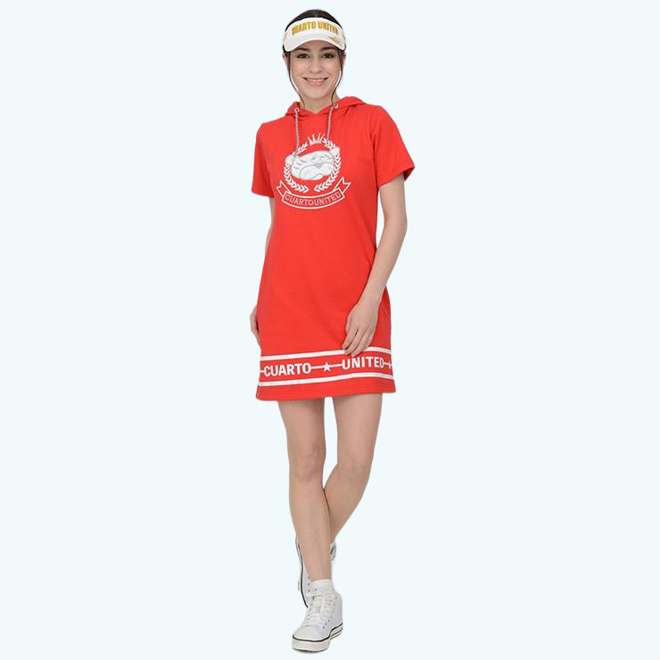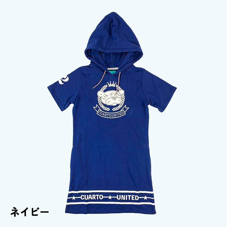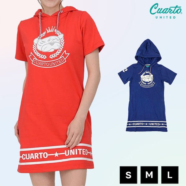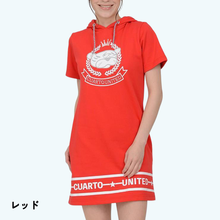 パーカーワンピース 半袖 裏起毛 カレッジエンブレム トラモチーフ 裾ロゴ レディース クアルトユナイテッド ゴルフウェア アウトレット 20SS