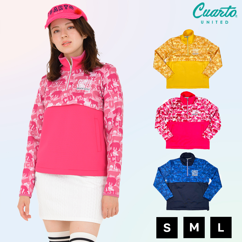 ハーフジップジャケット プルオーバー アニマルカモフラ柄 レディース クアルトユナイテッド ゴルフウェア アウトレット 20FW