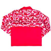 遠くから見るとカモフラ柄、近くで見ると夜に活動し始めたたくさんの動物たちがちりばめられたハーフジップ。