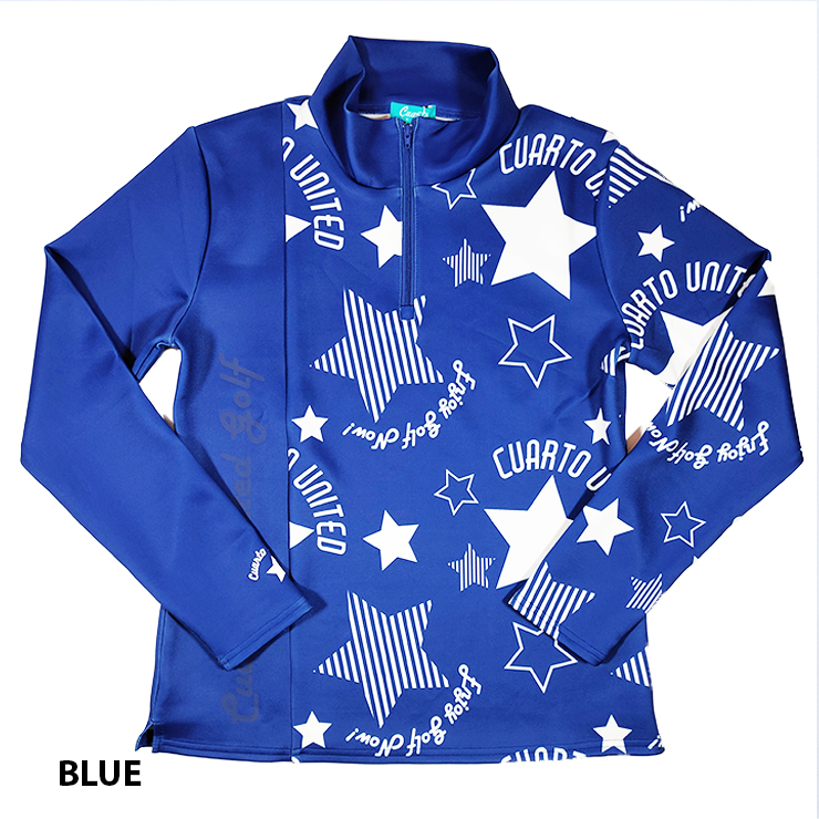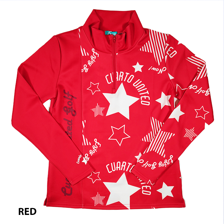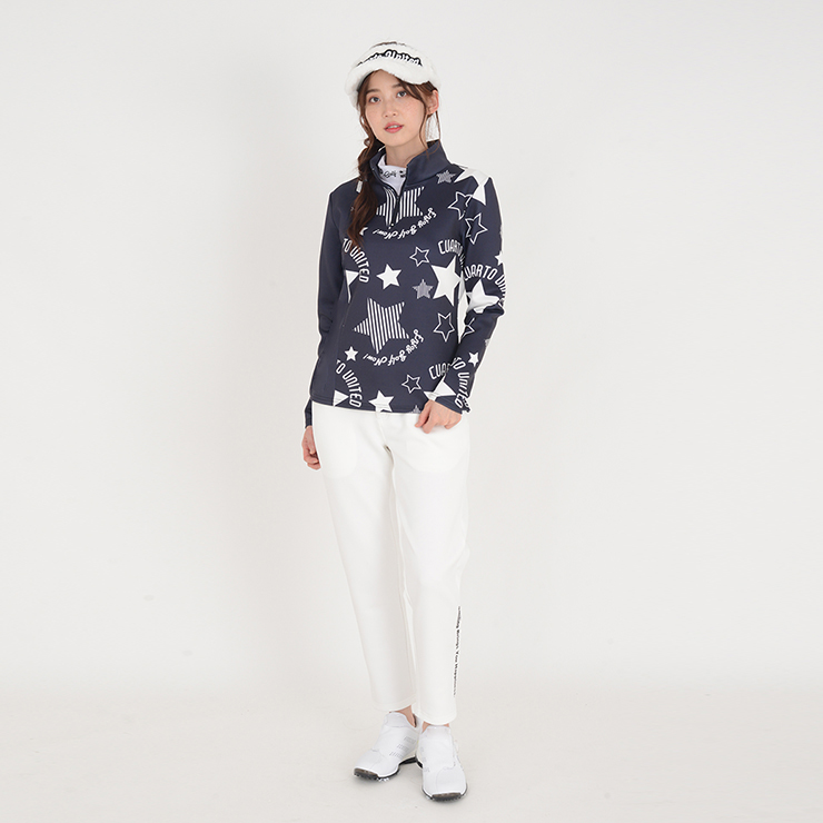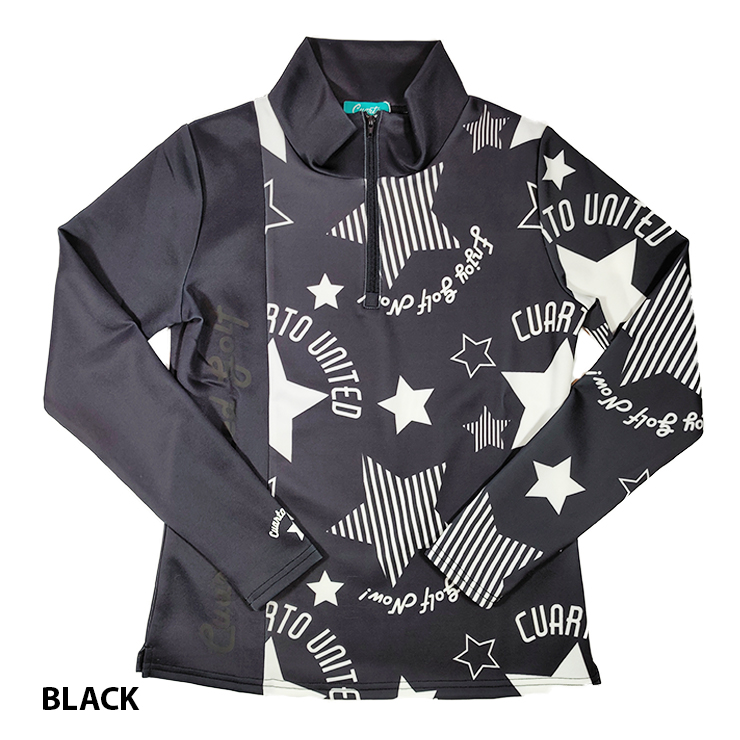 ハーフジップシャツ 長袖 スムースカットソー アシンメトリー 星総柄 レディース クアルトユナイテッド ゴルフウェア アウトレット 21FW