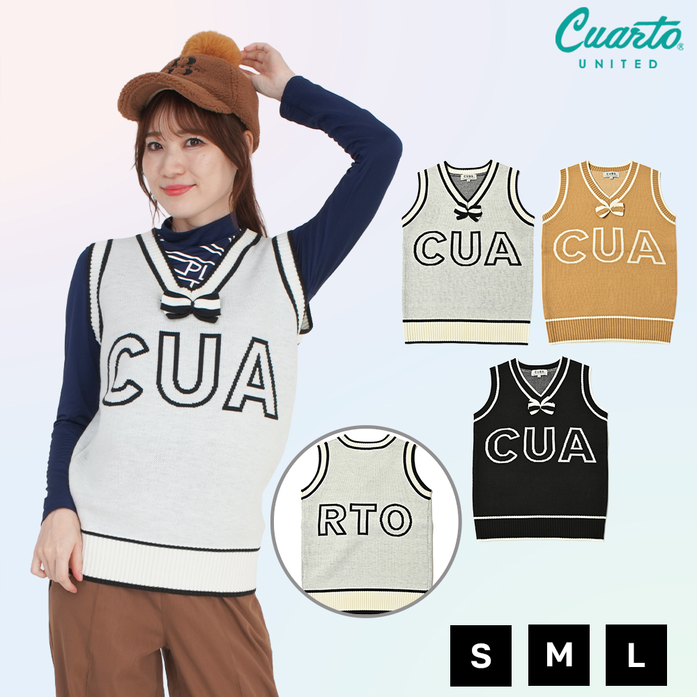 ニットベスト リボン付き カレッジ風 ビッグロゴ レディース クアルトユナイテッド ゴルフウェア 22BASIC