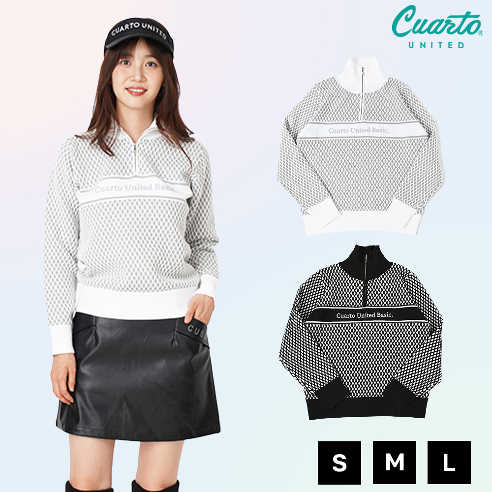 ニットトップス ハーフジップ プルオーバー 長袖 格子柄 立体ロゴ レディース クアルトユナイテッド ゴルフウェア 23BASIC