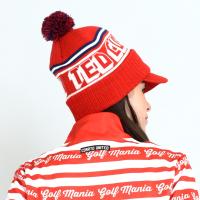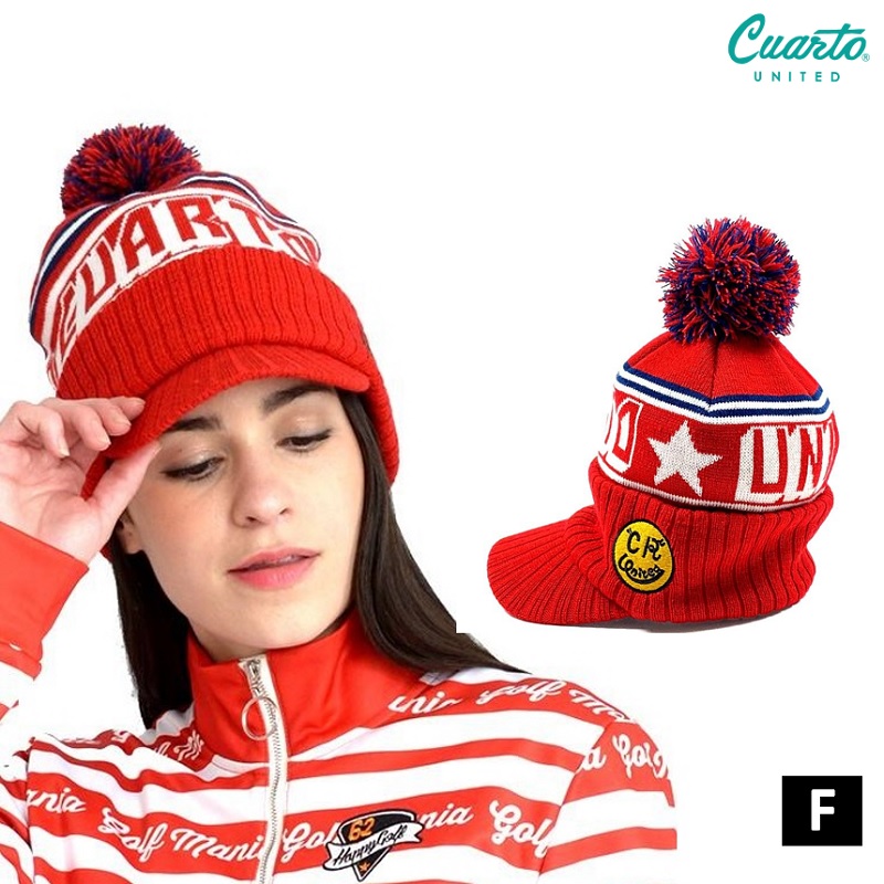 キャスケット ニット ボンボン スマイルワッペン ラウンドロゴ クアルトユナイテッド ゴルフググッズ アウトレット 19FW