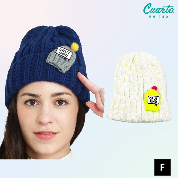 ニット帽 ビーニー ミニチュアニット帽付き ワッペンロゴ クアルトユナイテッド ゴルフググッズ 帽子 アウトレット 19FW