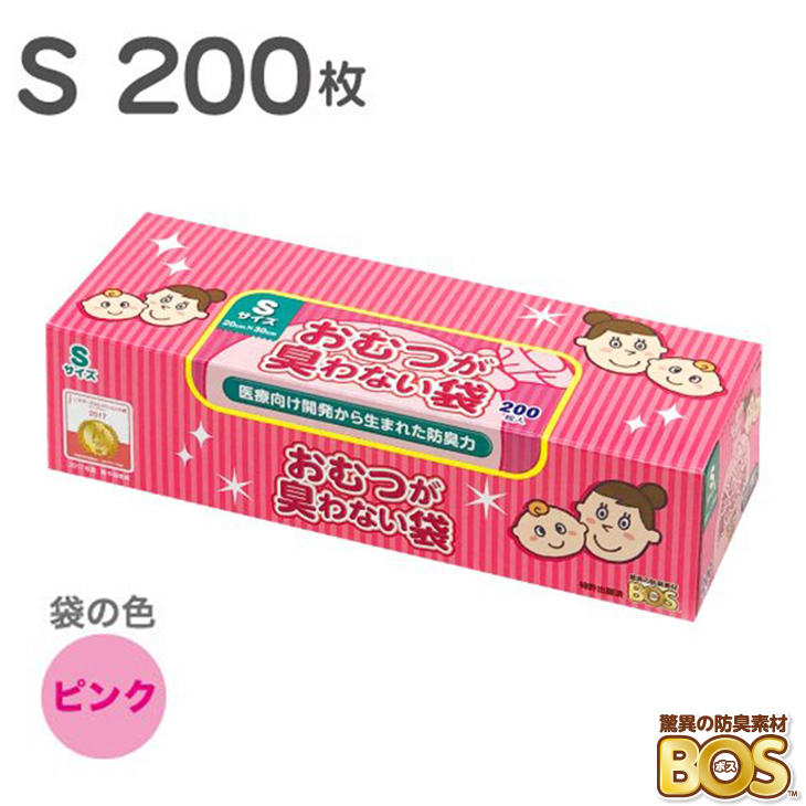 驚異の防臭袋 BOS ボス おむつが臭わない袋 BOS ベビー用 Sサイズ 200枚 (ピンク) ベビー 赤ちゃん おむつ