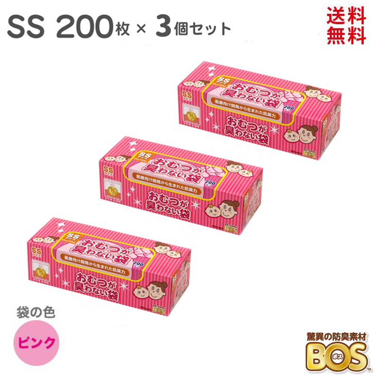 臭わない袋 オムツ SS 600枚 (200枚 × 3箱)驚異の防臭袋 BOS ボス おむつが臭わない袋 ベビー用 ピンク ベビー 赤ちゃん おむつ