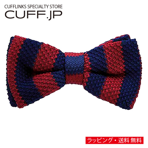 ニット 蝶ネクタイ レッド ネイビー ストライプ ニットタイ ボウタイ パーティー フォーマル メンズアクセサリー