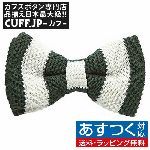 ニット 蝶ネクタイ グリーン クリーム ストライプ ニットタイ ボウタイ パーティー フォーマル メンズアクセサリー