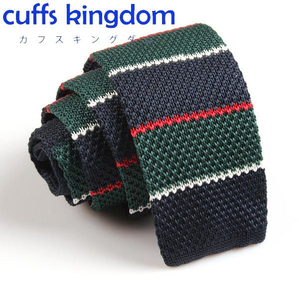 ダークグリーン赤白ニットネクタイ◆ニットタイプ 全長:約141cm 剣幅:約5cm【秋色系 緑 男女 祝 おしゃれ かわいい 結婚式 カジュ