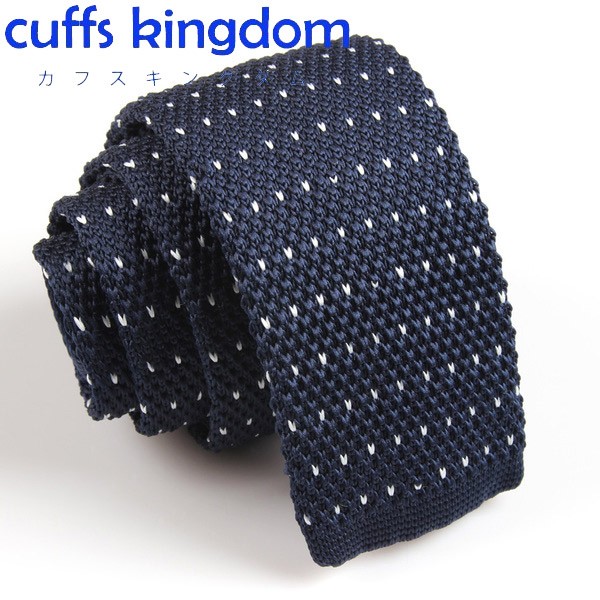 紺ドットニットネクタイ◆ニットタイプ 全長:約141cm 剣幅:約5cm【さわやか系 ブラック 男女 祝 おしゃれ かわいい 結婚式 カジュ
