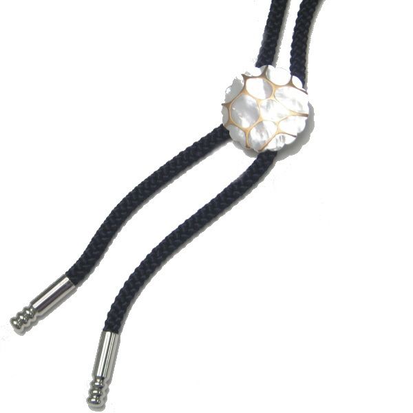 やわらかく独特な貝の輝きと金が見事に調和し、ドラマティックな雰囲気を醸し出す、美しいループタイ(ポーラー・タイ)です。
