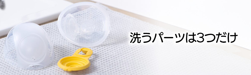 洗浄が必要なパーツは3つだけ。食器洗い機での洗浄や、電子レンジでのスチーム消毒も可能です*。小さなパーツが無いので、組み立てもとっても簡単です。